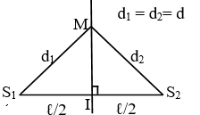 Khoảng cách max và min với trung điểm cùng pha với nguồn trong OM trên đường trung trực - Vật lý 12