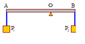 Thanh AB đồng chất, tiết diện đều có khối lượng m. Người ta treo các vật có trọng lượng lần lượt tại hai điểm A và B như hình vẽ. Đặt giá đỡ tại O để thanh cân bằng. Biết . Khối lượng m của thanh bằng