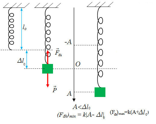 Lực đàn hồi cực đại và cực tiểu của lò xo thẳng đứng khi A nhỏ hơn độ biến dạng đầu - vật lý 12