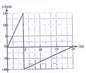 Một quả bóng bàn được bắn ra theo phương ngang với vận tốc đầu bằng không đến va chạm vào tường và bật lại trong khoảng thời gian rất ngắn. Hình vẽ là đồ thị vận tốc - thời gian mô tả chuyển động của quả bóng trong 20 s đầu tiên. Tính quãng đường mà quả bóng bay được sau 20 s kể từ lúc bắt đầu chuyển động.