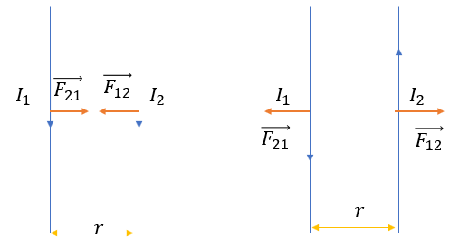 Hai dây dẫn cùng chiều dòng điện sẽ hút nhau , ngược chiều sẽ đẩy nhau