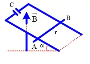 Dạng bài: Vật lý 11. Mặt phẳng nghiêng góc α = 60°, song song theo đường dốc chính, cách nhau một khoảng 20 cm, nối với tụ điện 10 mF. Đoạn dây dẫn AB có 1 Ω, có m = 10 g, đặt vuông góc. Sau một thời gian thanh chuyển động nhanh dần đều với gia tốc có độ lớn gần gi