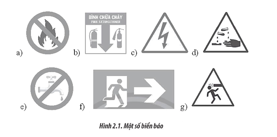 Cho các biển báo ở Hình 2.1, hãy sắp xếp các biển này theo từng loại (biển báo cấm, biển báo nguy hiẻm, biển thông báo) và cho biết ý nghĩa.