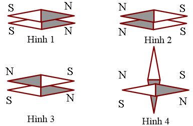 Hai kim nam châm nhỏ đặt trên Trái Đất. Nếu từ trường Trái đất yếu hơn từ trường kim nam châm , hai kim nam châm sẽ có dạng như thế nào?