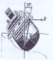 Dạng bài: Vật lý 10. Một con tàu vượt biển lớn bị mắc cạn gần đường bờ biển (tương tự trường hợp của tàu Costa Concordia vào ngày 13/01/2012 tại Ý) và nằm nghiêng ở một góc như hình vẽ. Hướng dẫn chi tiết.