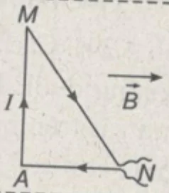 Dạng bài: Vật lý 11. Một dây dẫn được uốn thành một khung dây có dạng hình tam giác vuông AMN có AM = 8 cm, AN = 6 cm, B = 3.10-3 T. Khi dòng điện chạy trong khung dây có cường độ I = 5 A thì độ lớn lực từ các cạnh AM, MN và NA lần lượt là F1, F2 và F3. Giá trị của