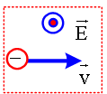 Một electron chuyển động thẳng đều trong miền có cả từ trường đều và điện trường đều. Véctơ vận tốc của hạt và hướng đường sức từ như hình vẽ. B = 0,004 T, v = 2. m/s, xác định hướng và cường độ điện trường E.