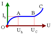 Đặc tuyến vôn - ampe của chất khí khi có dòng điện chạy qua. Ở đoạn nào có sự phóng điện không tự lực?