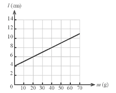 Một lò xo được treo thẳng đứng. Lần lượt treo vào đầu còn lại của lò xo các vật có khối lượng m thay đổi được thì chiều dài l của lò xo cũng thay đổi theo.