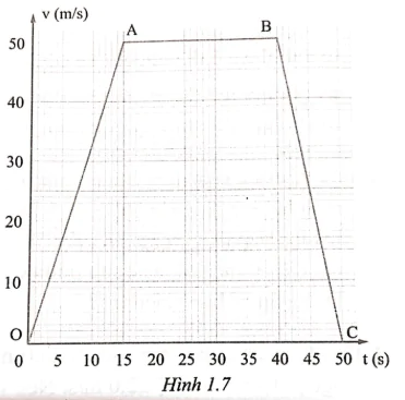 Một ô tô chuyển động trên đường thẳng. Đồ thị vận tốc - thời gian của nó được biểu diễn ở hình 1.7.