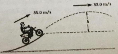 Trong một buồi trình diễn xe máy xiếc nghệ thuật, diễn viên cho xe chạy rời khỏi máng cong với tốc độ 35 m/s và tại điểm cao nhất của quỹ đạo tốc độ của xe giảm còn 33 m/s như Hình 3.15. Lấy gia tốc trọng trường