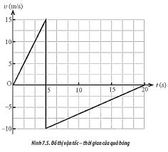 Dạng bài: Vật lý 10. Một quả bóng bàn được bắn ra theo phương ngang với vận tốc đầu bằng không đến va chạm vào tường. Hình 7.5 là đồ thị (v - t) mô tả chuyển động của quả bóng trong 20 s đầu tiên. Hướng dẫn chi tiết.