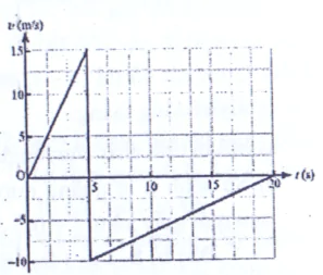 Một quả bóng bàn được bắn ra theo phương ngang với vận tốc đầu bằng không đến va chạm vào tường và bật lại trong khoảng thời gian rất ngắn. Hình vẽ là đồ thị vận tốc - thời gian mô tả chuyển động của quả bóng trong 20 s đầu tiên. Tính quãng đường mà quả bóng bay được sau 20 s kể từ lúc bắt đầu chuyển động.