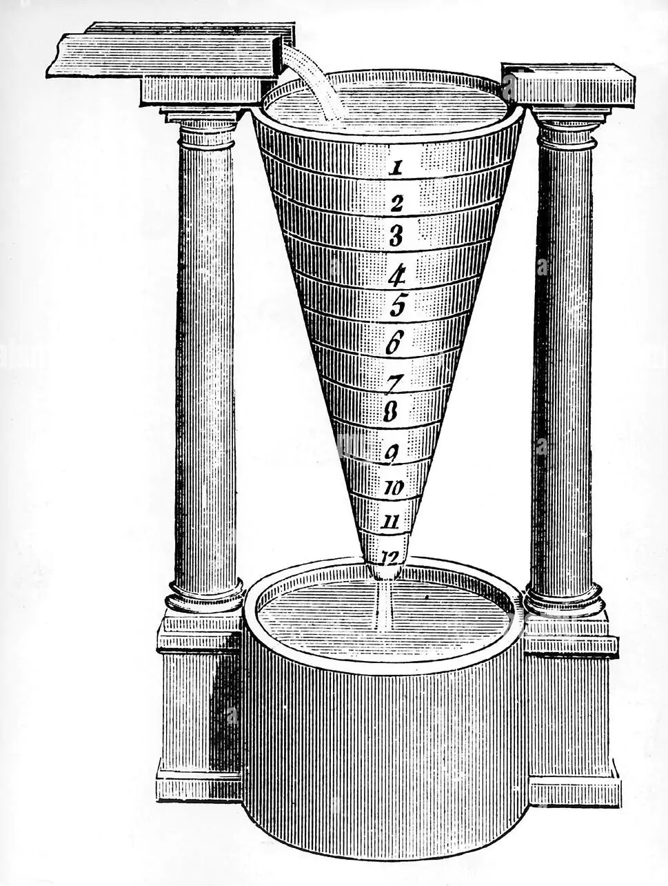 Đồng hồ nước là dụng cụ đo thời gian đầu tiên không phụ thuộc vào các yếu tố thiên văn để xác định thời gian, có nghĩa là nó có thể được dùng vào bất cứ lúc nào trong ngày/đêm. Đồng hồ nước hoạt động bằng cách đo lượng nước nhỏ từ một bình chứa này sang bình chứa khác. Người Ai Cập sở hữu phát minh này, tuy nhiên nó đã phổ biến và được sử dụng rộng rãi khắp thế giới, vài nước trên thế giới thậm chí còn sử dụng loại đồng hồ đo thời gian này cho đến tận thể kỉ XX.