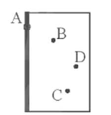 Khi tác dụng một lực F vuông góc với cánh cửa, có độ lớn không đổi vào các vị trí khác nhau như hình bên. Biết bản lề của cánh cửa là trục tô đậm. Moment lực gây ra tại vị trí nào là lớn nhất?