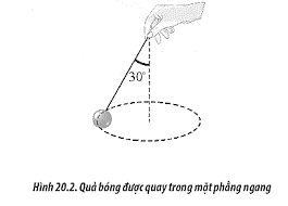 Một trái bóng được buộc vào một sợi dây và quay tròn đều trong mặt phẳng ngang như Hình 20.2. Tính bán kính quỹ đạo và chiều dài L của sợi dây.