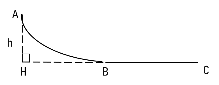 Một vật nhỏ có khối lượng m = 100 g, bắt đầu chuyển động (không vận tốc đầu) từ điểm A trên mặt cong AB. Sau khi đi hết mặt cong AB, vật tiếp tục chuyển động trên mặt phẳng ngang thêm một đoạn BC = 2 m thì dừng lại. Biết điểm A có độ cao h = 1 m so với mặt ngang BC, hệ số ma sát trượt giữa vật với mặt ngang BC là μ = 0,1. Tính công của lực ma sát trên mặt cong AB.