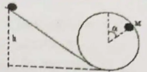 Một vật nhỏ khối lượng m, trượt từ độ cao h trên một mặt phẳng nghiêng vào một vòng xiếc có bán kính R = 2 m. Bỏ qua mọi ma sát.