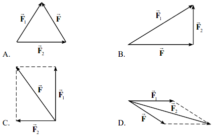 Hình vẽ nào sau đây biểu diễn đúng tổng hợp của hai lực vectơ F1, vectơ F2?