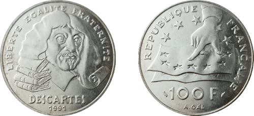 Năm 1942, đồng 100 francs in hình nhà toán học và triết học người Pháp là Rene Descartes. Như vậy Pháp là quốc gia đầu tiên in hình một nhà khoa học lên đồng tiền.