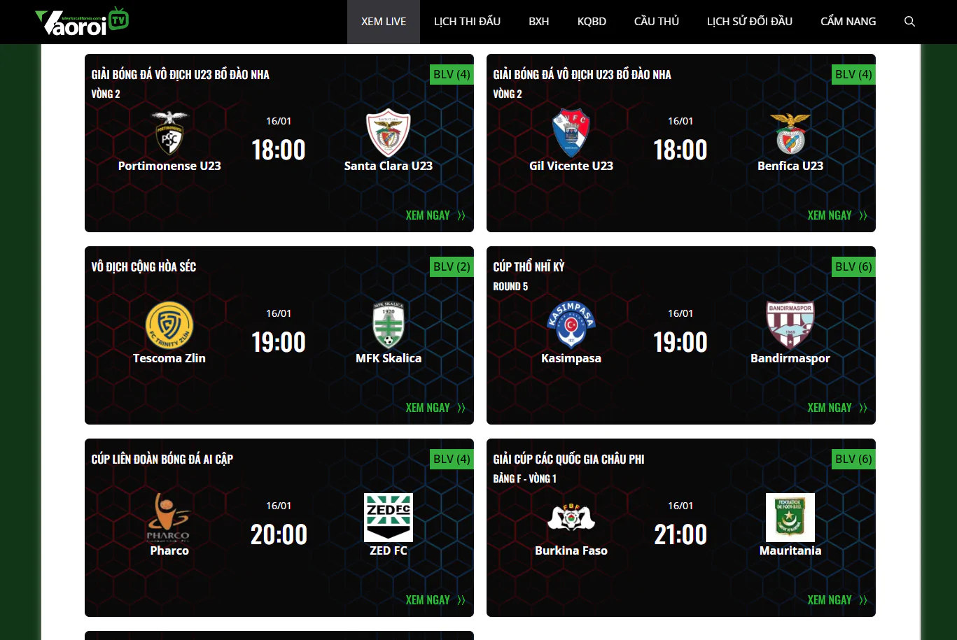 Bước 1: Vào trang web https://vaoroi tv/ và xem lịch thi đấu được cập nhật trên hệ thống để chọn trận đấu bóng đá mình yêu thích.
