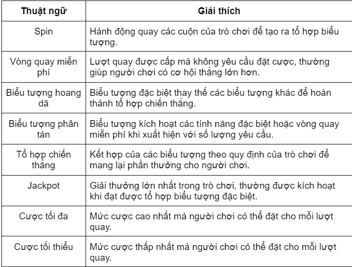 Người mới tham gia Nổ Hũ Hello88 cần phải hiểu rõ các thuật ngữ cơ bản trong game. Dưới đây là một số định nghĩa phổ biến, giúp bạn nắm bắt và tận dụng tối đa các tính năng trong trò chơi: