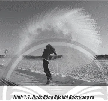 Ở những nơi có nhiệt độ thấp (dưới C), người ta nhận thấy rằng khi vung cùng một lượng nước nhất định ra không khí thì nước nóng sẽ nhanh đông đặc hơn so với nước lạnh (Hình 1.1). Em hãy xây dựng tiến trình tìm hiểu hiện tượng trên, mô tả cụ thể các bước cần thực hiện, sau đó thực hiện tiến trình vừa xây dựng tại nhà và lưu lại kết quả thực hiện.