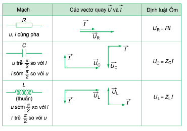 là pha ban đầu của hai đầu điện trở, là pha ban đầu của hai đầu cuộn cảm, là pha ban đầu của ở hai đầu tụ điện. Trong cùng 1 mạch điện các pha này lệch nhau .