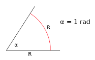 | Định nghĩa | Một radian được định nghĩa là góc phụ từ tâm của đường tròn chắn một cung có độ dài bằng với bán kính của đường tròn. Cách nói khác: Độ lớn tính bằng radian của một góc phụ bằng tỷ số giữa độ dài cung và bán kính của đường tròn. | Là số đo một góc mặt phẳng. Trong đó: một vòng quay hoàn toàn là 360 độ. Cách nói khác: đó là góc ở tâm đường tròn chọn một cung tròn có chiều dài bằng 1/360 chu vi hình tròn. | Là góc ở tâm chắn một cung tròn có độ dài bằng 1/400 chu vi đường tròn. |