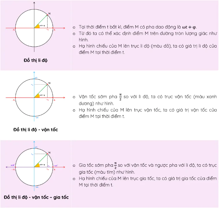 Để biểu diễn các đại lượng dao động điều hòa trên cùng một đường tròn ta có 2 cách là đa điểm hoặc đa trục. Tùy vào từng bài toán mà ta có thể áp dụng đường tròn nào cho phù hợp.
