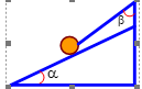 Quả cầu đồng chất có khối lượng được giữ trên mặt phẳng nghiêng nhờ một dây treo như hình vẽ. Biết , lực căng dây . Lấy và bỏ qua ma sát. Góc β bằng?