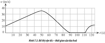 Quan sát đồ thị (v - t) mô tả chuyển động thẳng của tàu hoả trong Hình 7.3 và trả lời các câu hỏi sau: Tại thời điểm nào, vận tốc tàu hỏi có giá trị lớn nhất?