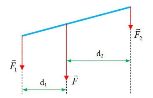 + Giá của hợp lực chia khoảng cách giữa hai giá của hai lực song song thành những đoạn tỉ lệ nghịch với độ lớn của hai lực ấy: (chia trong).