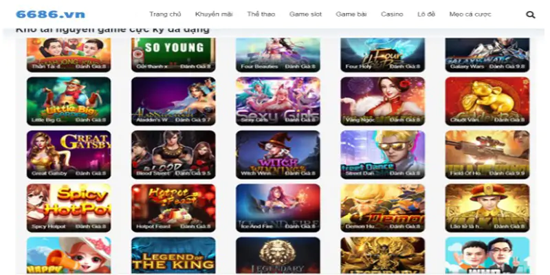6686 tự hào về sự đa dạng của bộ sưu tập slot game, bao gồm cả số lượng lớn, đề tài phong phú, đồ họa tuyệt vời, âm thanh sống động và tính năng đặc biệt độc đáo. Trải nghiệm chơi đa dạng này mang lại cho người chơi sự hứng thú liên tục.