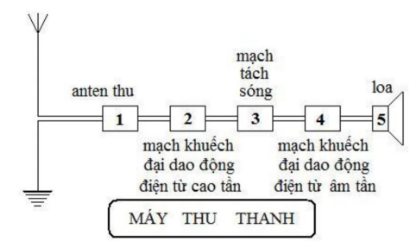 Gồm 5 bộ phận: anten thu - khuếch đại cao tần- tách sóng- khuếch đại âm tần - loa