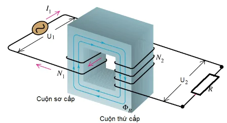 Gồm có : hai cuộn dây có số vòng khác nhau , quan trên lõi biến áp .Với lõi biến áp làm bằng khung sắt non gồm nhiều lá sắt mỏng cách điện nhằm giảm dòng điện Fu cô