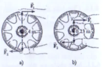 Ta cần tác dụng một mômen ngẫu lực 12 N.m để làm quay bánh xe như hình vẽ. Xác định độ lớn lực tác dụng vào bánh xe ở hình a và hình b. Từ đó, hãy cho biết trường hợp nào sẽ có lợi hơn về lực.