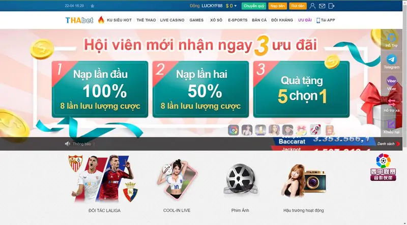 Thabet còn ghi điểm với người chơi nhờ đa dạng các chương trình ưu đãi thể thao hấp dẫn. Các chương trình khuyến mãi được thiết kế linh hoạt và thường xuyên, từ thưởng nạp lần đầu, hoàn trả cược thua, đến các giải đấu cá cược với phần thưởng giá trị.