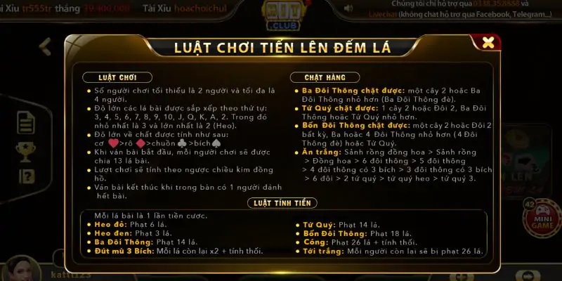 Luật chơi game bài đổi thưởng Tiến lên đếm lá Hit Club