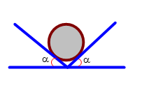 Hai mặt phẳng đỡ tạo với mặt phẳng nằm ngang các góc α = 45°. Trên 2 mặt phẳng đó người ta đặt 1 quả cầu đồng chất có khối lượng như hình. Xác định áp lực của quả cầu lên mỗi mặt phẳng đỡ. Bỏ qua ma sát và lấy .
