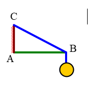 Một ngọn đèn có khối lượng được treo vào tường bởi sợi dây BC và thanh AB. Thanh AB gắn với tường nhờ vào bản lề A, với AC và BC tạo với nhau một góc 60°. Tìm lực căng của dây tác dụng lên thanh AB nếu bỏ qua khối lượng thanh. Lấy .
