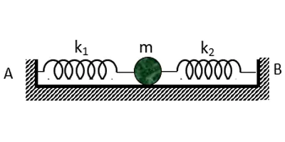Dạng bài: Cho hệ dao động (h.vẽ). Biết k1 =10N/m; k2=15N/m; m=100g. Tổng độ giãn của 2 lò xo là 5cm. Kéo vật tới vị trí để lò xo 2 không nén, không giãn rồi thả ra. Vật dao động điều hoà .Năng lượng dao động của vật là. Hướng dẫn chi tiết theo từng bài.