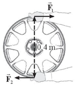 Ta cần tác dụng một moment ngẫu lực 12 N.m để làm quay bánh xe như hình.