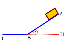 Dạng bài: Vật lý 10. Mặt phẳng nghiêng hợp với phương ngang một góc α = 30° như hình vẽ. Một vật trượt không vận tốc ban đầu từ đỉnh A của mặt phẳng nghiêng với độ cao 1 m. Hướng dẫn chi tiết.
