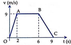 Một chất điểm khối lượng m = 500 g trượt trên mặt phẳng nằm ngang dưới tác dụng của lực kéo theo phương ngang. Cho hệ số ma sát μ = 0,4, lấy g = 10 m/. Đồ thị vận tốc - thời gian của chất điểm như hình vẽ. Xác định giá trị của lực kéo trên mỗi giai đoạn OA, OB và BC.