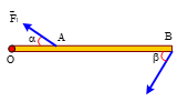 Thanh nhẹ OB có thể quay quanh O. Tác dụng lên thanh các lực tại A và B như hình vẽ. Biết ; ; ; và . Để thanh cân bằng nằm ngang thì lực có độ lớn là