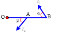 Thanh nhẹ OB có thể quay quanh trục O. Tác dụng lên thanh các lực đặt tại A và B. Biết lực . Thanh cân bằng, các lực F1 và F2 hợp với AB các góc . Tính