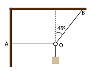 Một vật có trọng lượng 20 N được treo vào một vòng nhẫn O (coi là chất điểm). Tìm lực căng dây OA và OB.