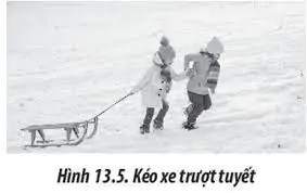 Trong Hình 13.5, hai bạn nhỏ đang kéo một chiếc xe trượt tuyết. Xét lực kéo có độ lớn 45 N và góc hợp bởi dây kéo so với phương ngang là 400.