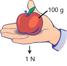 Trọng lượng của quả cân có khối lượng m = 100 g là P= 1 N.